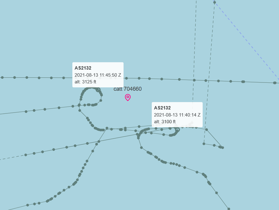 Ore 11:40 UTC: il drone spia di Frontex AS2132 con codice ICAO 4D232D sorvola insistentemente lo stesso punto in cui avviene la cattura della barca n. 704660 con 100 persone a bordo.
