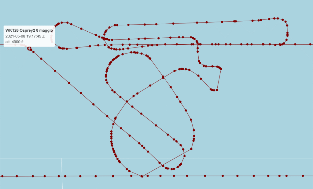 Tra le 5:06 e le 8:53 UTC l’aereo spia di Frontex Osprey 2 sorvola i punti dove verranno avvistate e/o catturate le barche delle operazioni Themis numero 603458, 603468 e 603481.