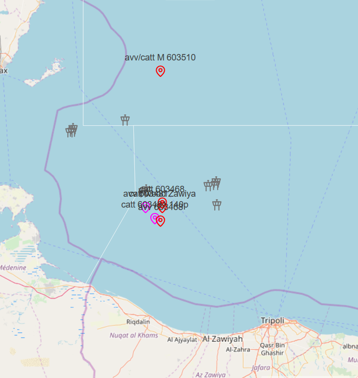 Inserendo su mappa le coordinate di avvistamento e cattura delle 3 operazioni Themis 603468 603481 e 603510 e le coordinate della cattura della barca di legno riprese in video dai miliziani della motovedetta Zawiya 656, si ottiene il seguente quadro geografico: