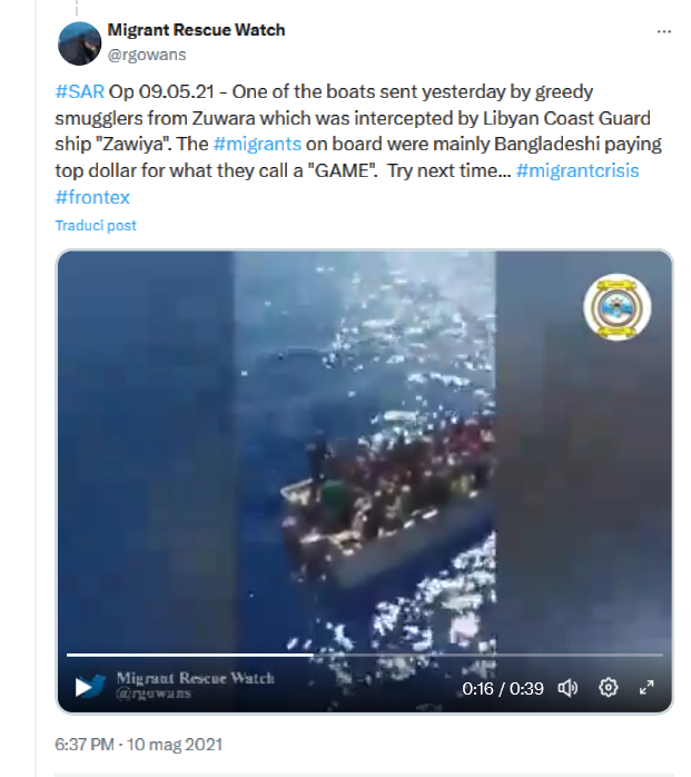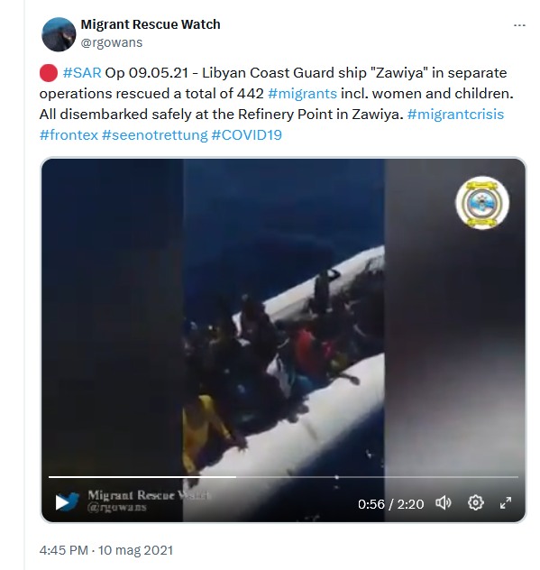 IOM scheda i seguenti respingimenti al link https://x.com/IOM_Libya/status/1394323839962714118: