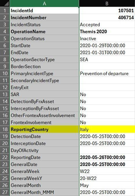 Estrapolando i dati importanti dal database JORA di Frontex, apprendiamo le seguenti informazioni: