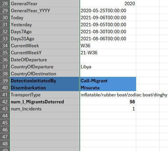 Il 25 maggio 2020 un gommone con a bordo 98 persone (di cui 72 di nazionalità bengalese e 26 di nazionalità sudanese, somala e eritrea) è stato individuato e successivamente intercettato grazie a una segnalazione diretta effettuata dagli stessi migranti (39. DetectionInitiatedBy: Call-Migrant) ad Alarm Phone. Il rapporto di Frontex sopra riportato evidenzia, inoltre, che le persone sono state riportate in Libia e sbarcate a Misurata (40. Disembarkation: Misurata) e che l’imbarcazione non è stata rilevata da un asset Frontex. Malta ha preso parte all’operazione, coordinandone i soccorsi. Questa cattura, dunque, è un’operazione Themis, cioè un’operazione europea di controllo delle frontiere.
