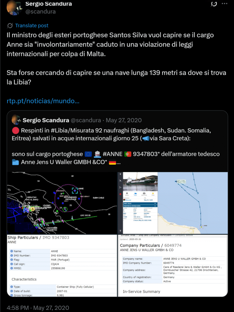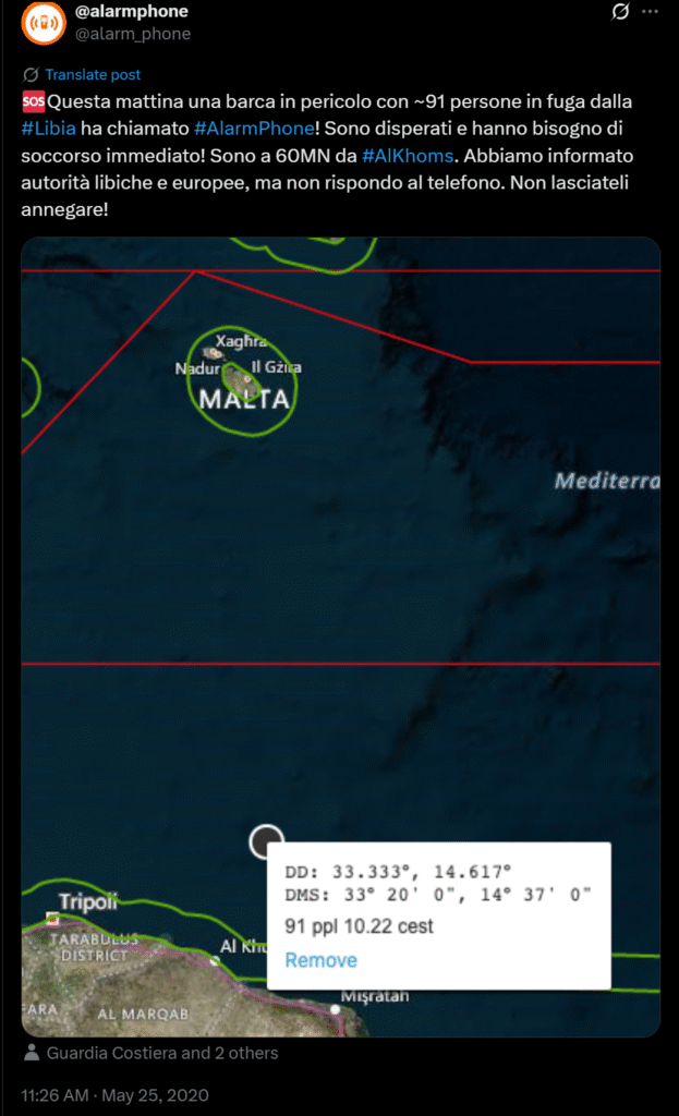 link fonte X (ex Twitter): https://x.com/alarm_phone/status/1264850274298060801