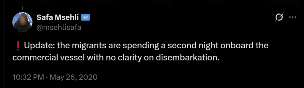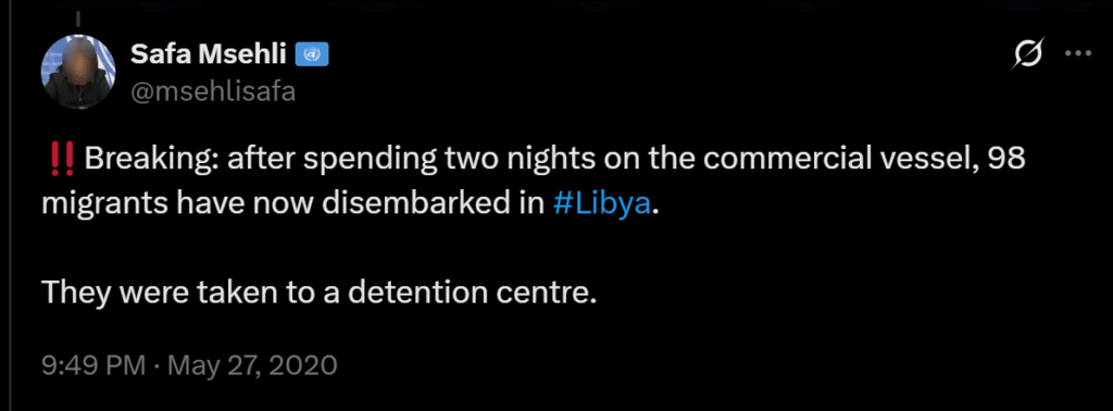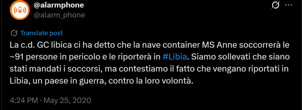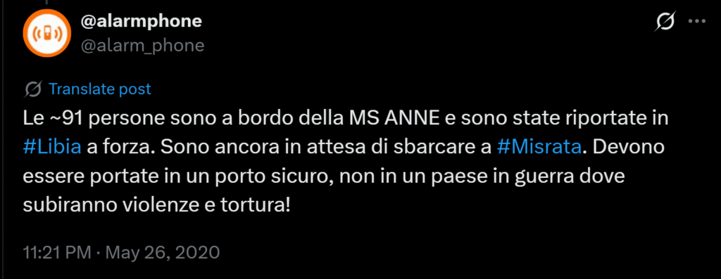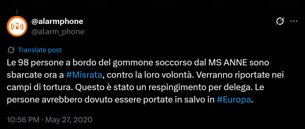 link fonte X (ex Twitter): https://x.com/alarm_phone/status/1265748789438152706