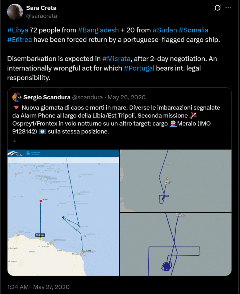 link fonte X (ex Twitter): https://x.com/alarm_phone/status/1264925290062655489