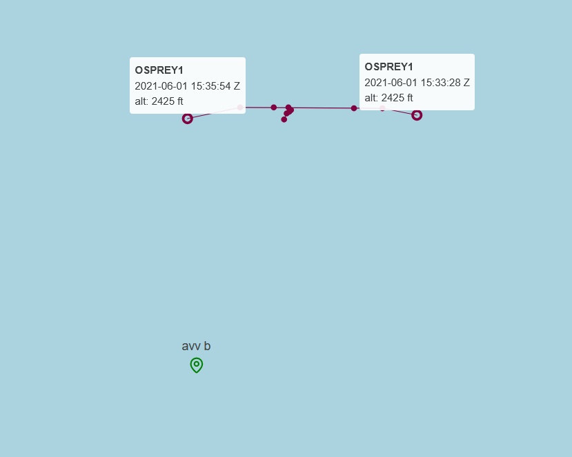 Dalle ore 15:33 alle 15:35 UTC: probabile AVVISTAMENTO del gommone da parte dell’aereo spia di Frontex Osprey 1 con codice icao 40785b. L’aereo, che viaggia a transponder parzialmente spento, lo accende. Sta volando da est a ovest in un tratto di mare distante meno di 5 miglia dal punto di avvistamento del gommone poi segnato dall’operazione Themis. Alle 15:35 Osprey1 spegne nuovamente il transponder.