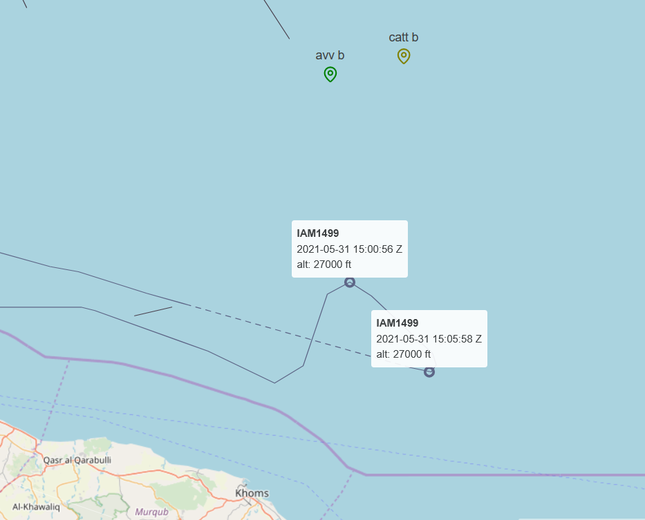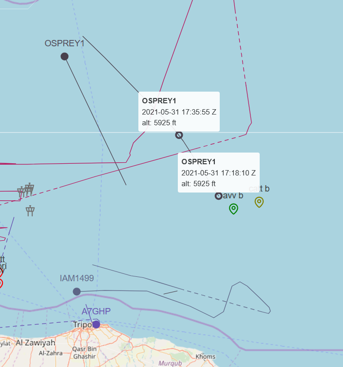 Ore 17:49 UTC: l’aereo spia di Frontex Osprey1 torna a Lampedusa dopo una missione di ricognizione nella zona a est di Tripoli. Fonte: Scandura https://x.com/scandura/status/1399497896433684484