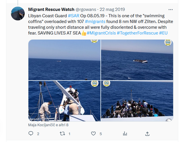 - Su FB la cosiddetta Guardia Costiera libica posta un lungo report sui 2 casi. E’ ancora visionabile qui https://www.facebook.com/CoastGuardly/posts/pfbid0nAQFD4aGPtRkJPFGKmSojKiVJeqksPhwGA5u39fBcJveWK47pz74g6zVCfqVAUuXl