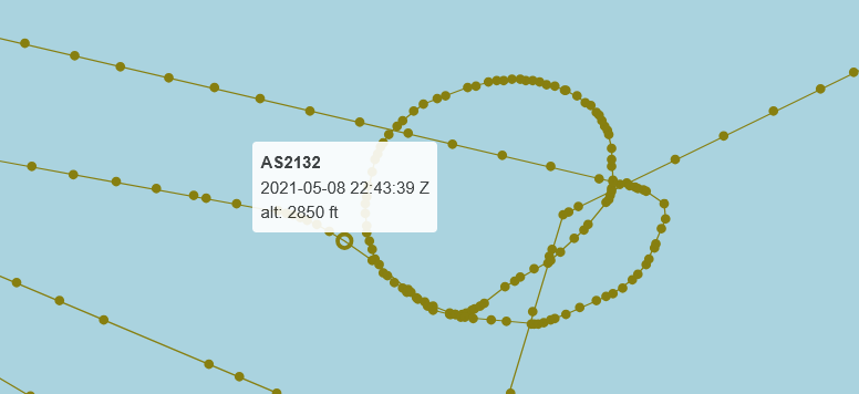 Tra le 22:43 e le 23:49 UTC: il drone spia di Frontex AS2132 sorvola in cerchio altri punti.