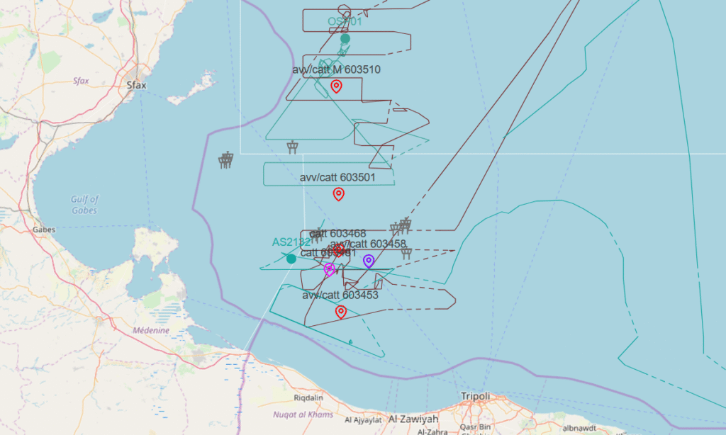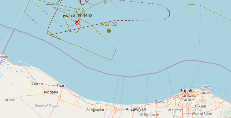 L’imbarcazione si trova in SAR maltese a coordinate 34.7833333, 12.133333333333335. La posizione corrisponde alla barca che verrà poi catturata nell’operazione Themis n. 603510.