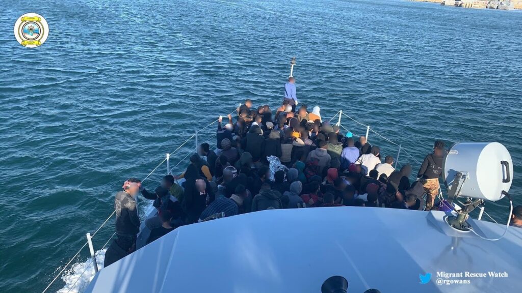 1) barca di legno partita da Zuwara (lo dicono nel video della cattura) con a bordo principalmente cittadini del Bangladesh. I libici filmano le coordinate della cattura: 33.7341667, 12.200833333333332. Potrebbe corrispondere all’operazione Themis n. 603468, che riguarda la cattura di una barca di legno con a bordo 150 persone.
