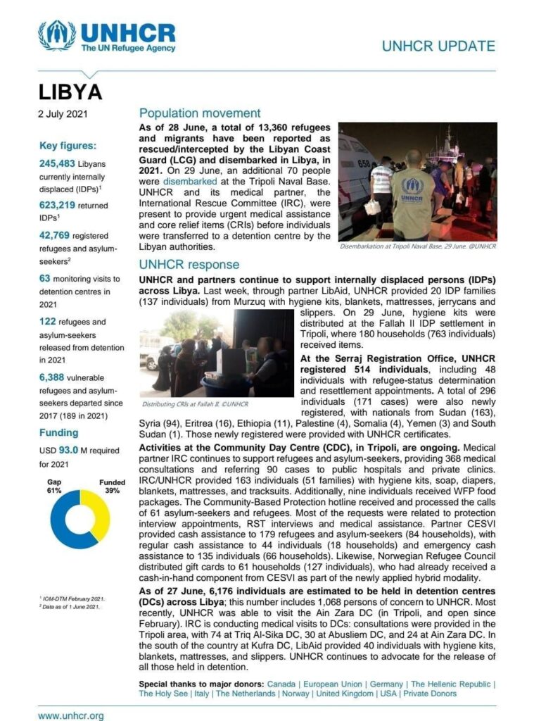 UNHCR nel suo report conferma che lo sbarco è avvenuto il 29 giugno 2021 alla Base navale di Tripoli.