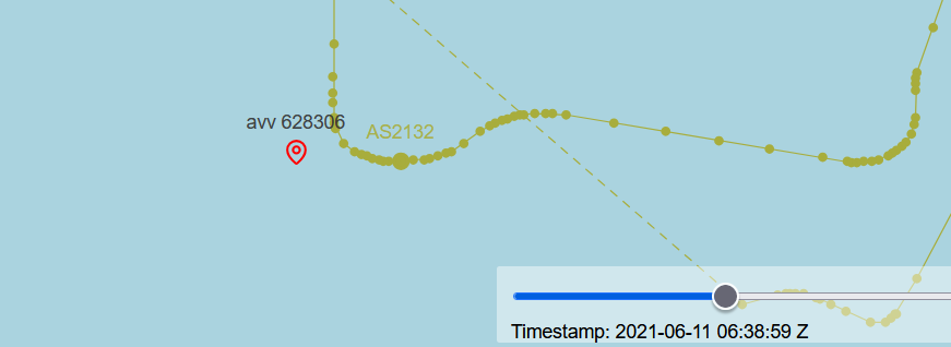 Ore 04:40 UTC: il drone spia di Frontex AS2132 sorvola il punto di avvistamento della barca 628855, che verrà poi catturata dalla motovedetta Zawiya (caso A sul nostro database).
