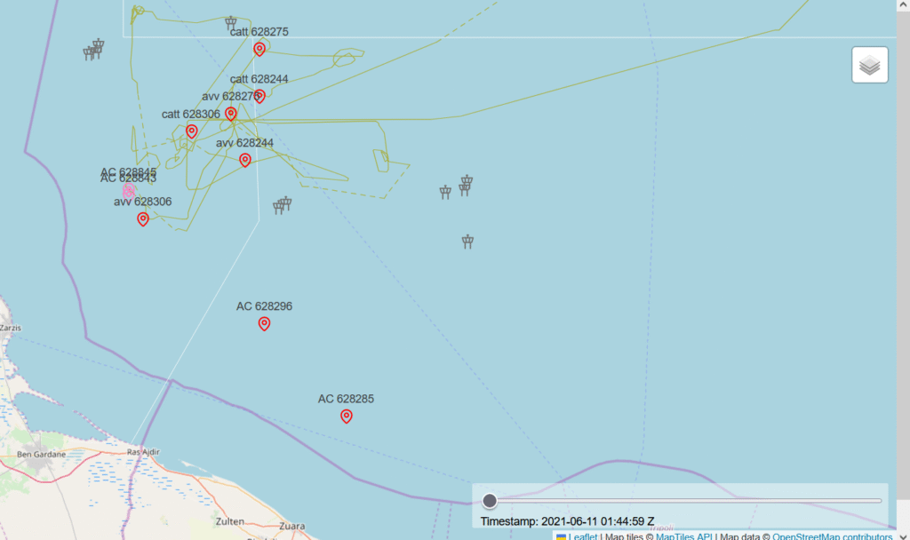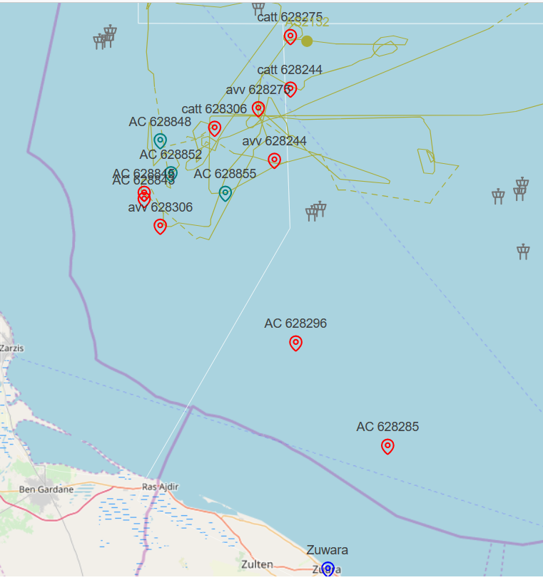 Le due barche rimanenti (628285 e 628296) vengono individuate probabilmente da altro assetto (Third Country Action) a noi attualmente sconosciuto.